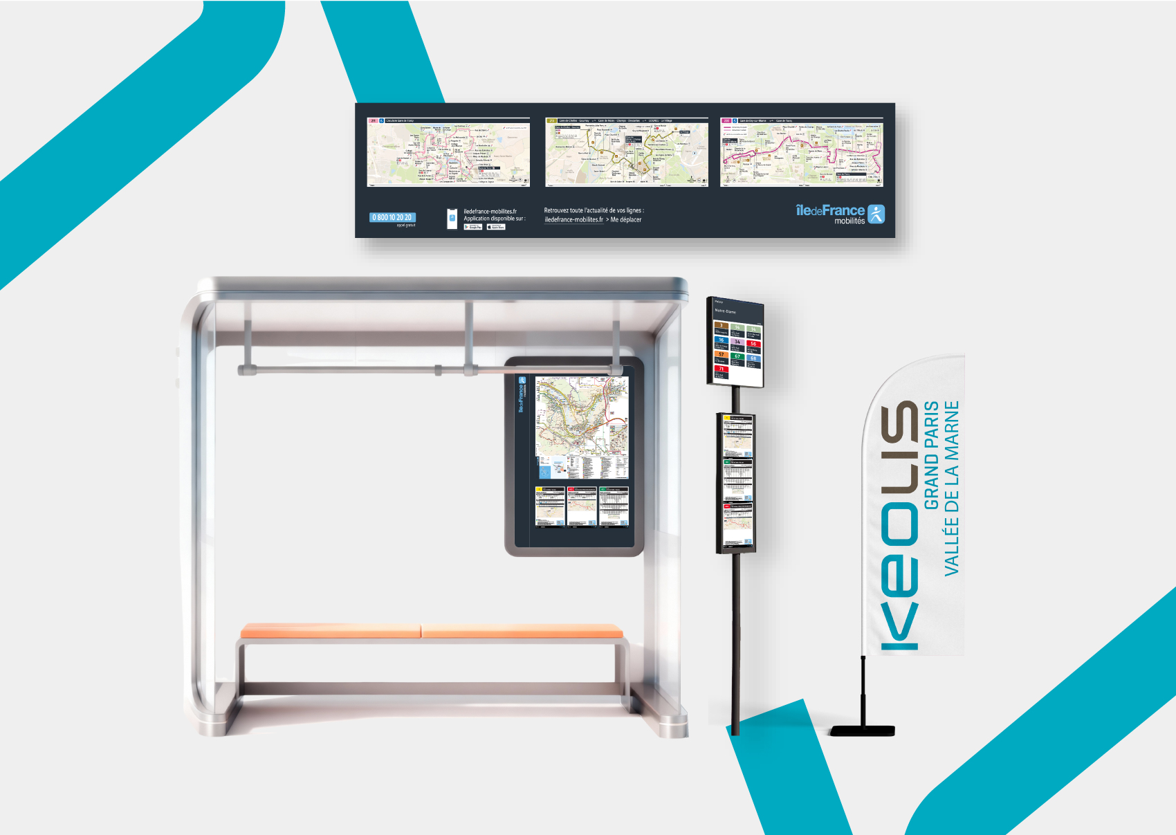 Affiche – FH – étiquette – roll up – oriflamme – drapeau – flyer – stickers – ligne dynamique – schémas de ligne – plan de réseau – bâche
