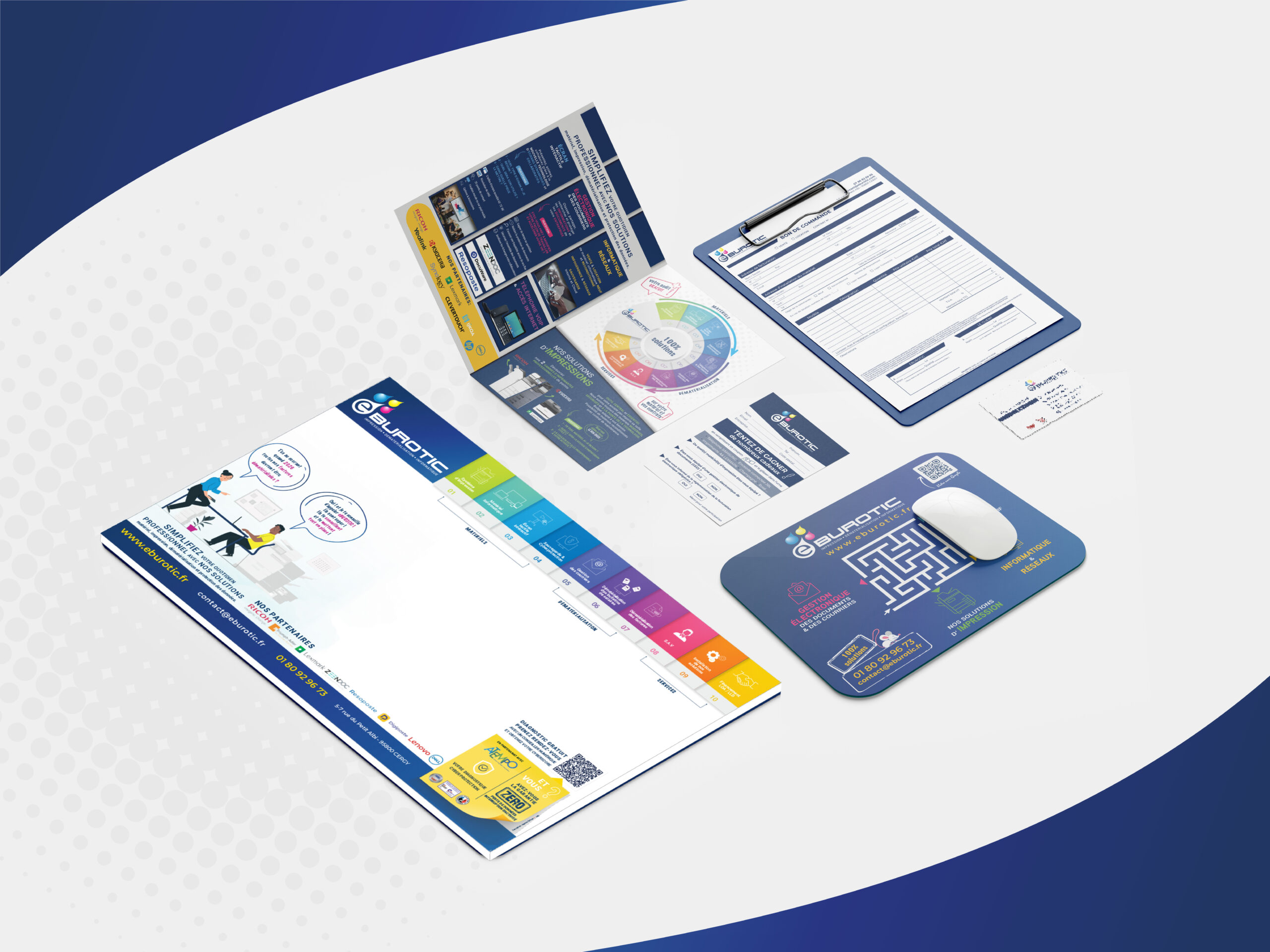 Pour sa communication print, eBurotic a fait appel à Ta’Kom, qui a conçu